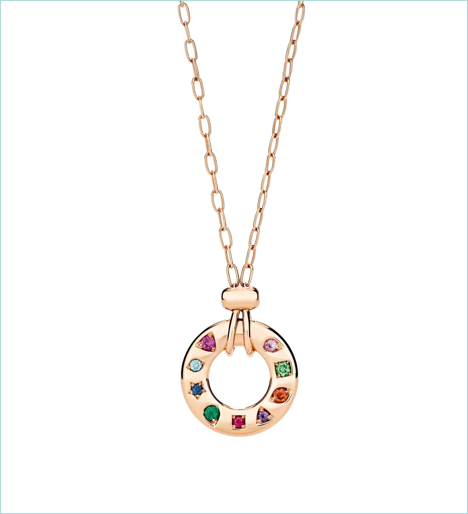 Pomellato Anhänger mit Kette „Iconica“ 750/- Roségold, Saphire, Tsavorit, Amethyst, Rubin, Smaragd, Zirkon. 6.500 EUR