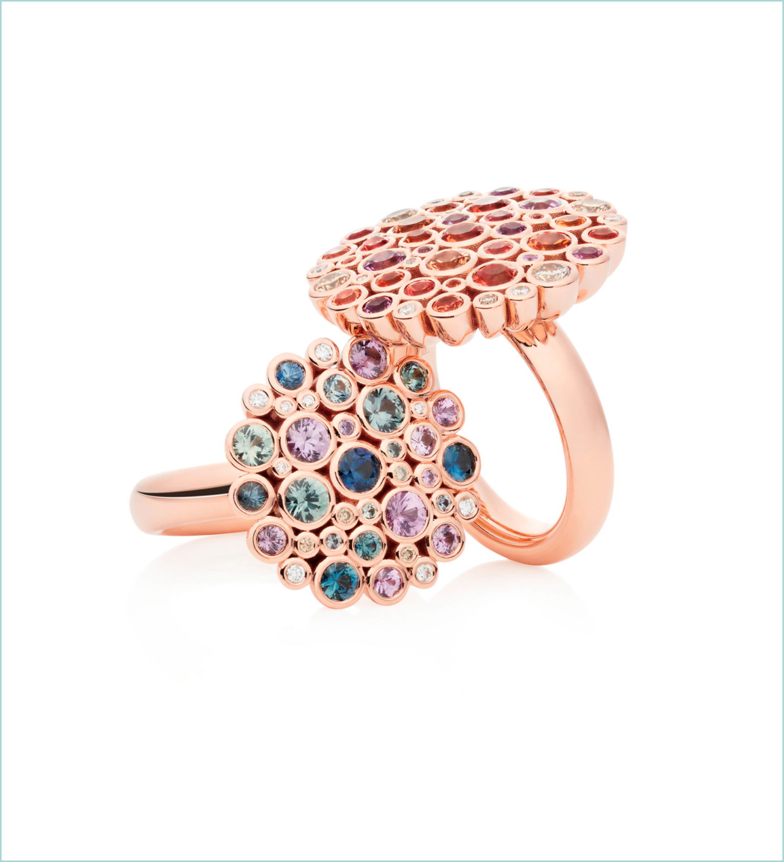 Bron Ringe „Confetti“ 750/- Roségold, Diamanten, Saphire. Ab 12.750 EUR