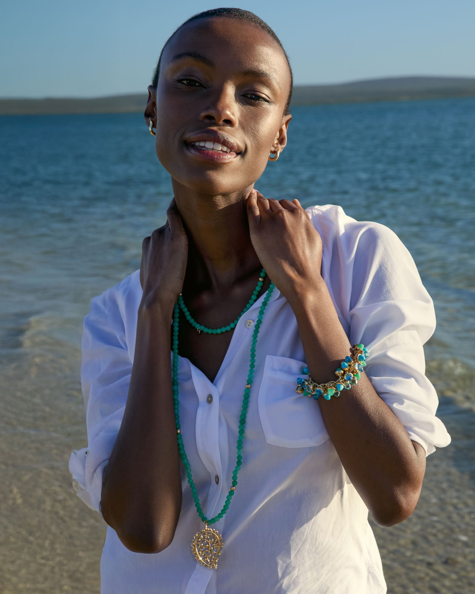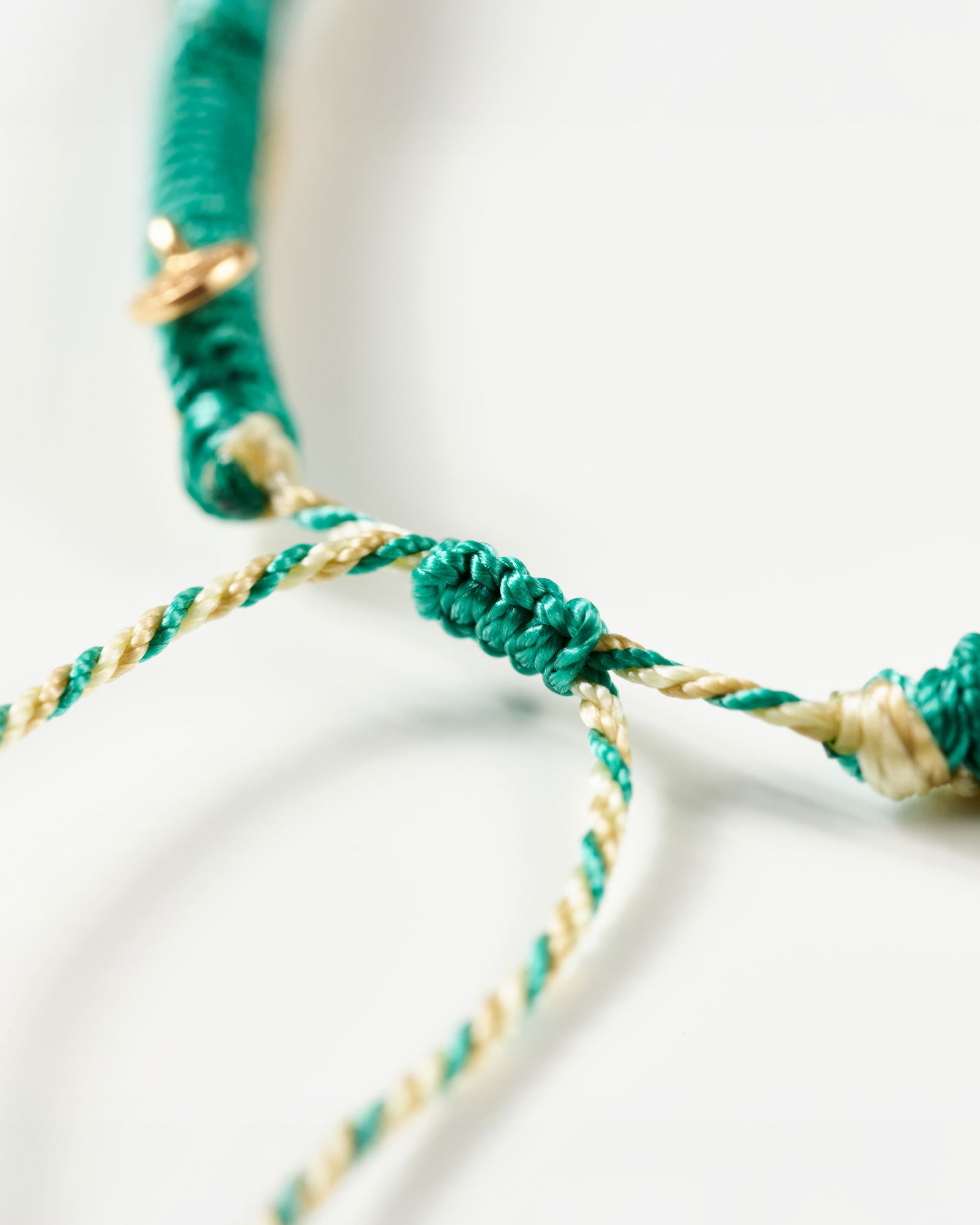 Dieses von Charlotte Lynggaard entworfene Life-Armband Laguna besteht aus neun handgeknüpften Strängen, die jeweils aus sechs handgefärbten Nylonfäden gefertigt und mit einem dezenten Anhänger aus 18-karätigem Gold versehen sind. Ein Schiebeknoten zum Verstellen sorgt für einen bequemen Sitz. Die Schnüre enden in formschönen Details. Eine Größe. Teil der Life-Kollektion.