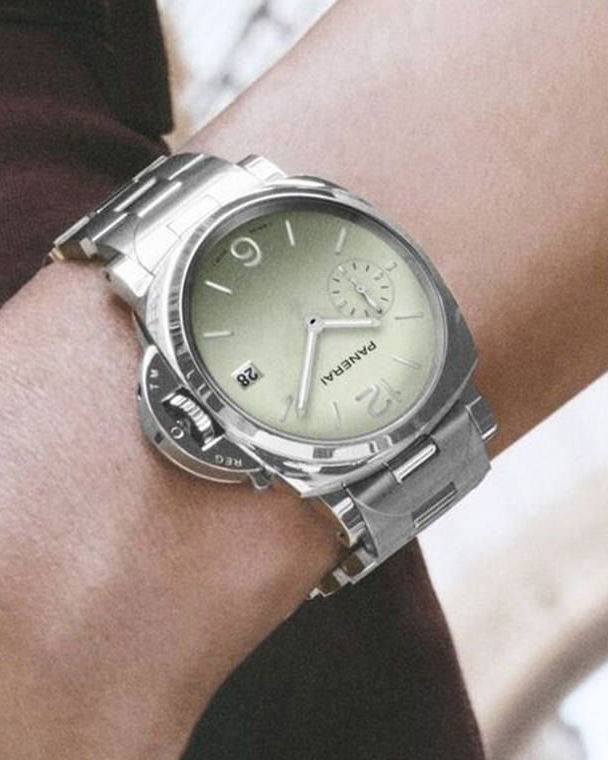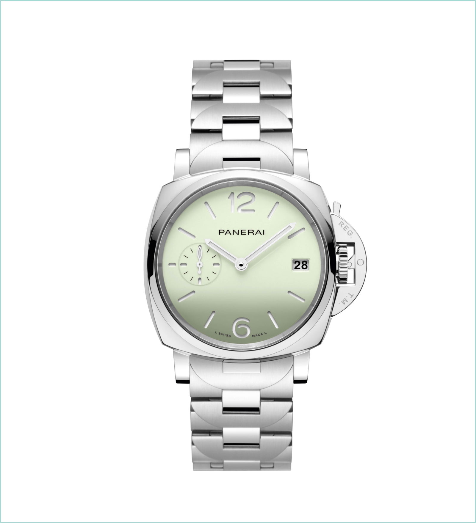 Panerai Luminor Due Pastello Ø 38 mm, Automatik (Kaliber P.900), Gangreserve bis zu 72 Stunden, Edelstahl, wasserdicht bis 5 bar. 8.000 EUR