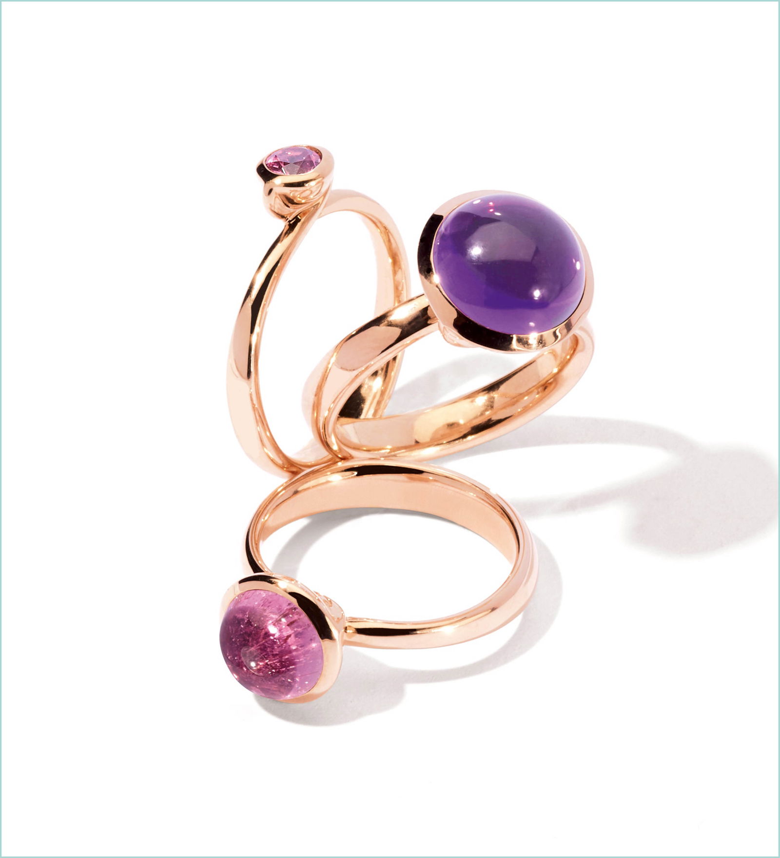 Tamara Comolli Ringe „Bouton“ 750/- Roségold, pink Spinell, Amethyst, rosa Turmalin. Ab 2.150 EUR