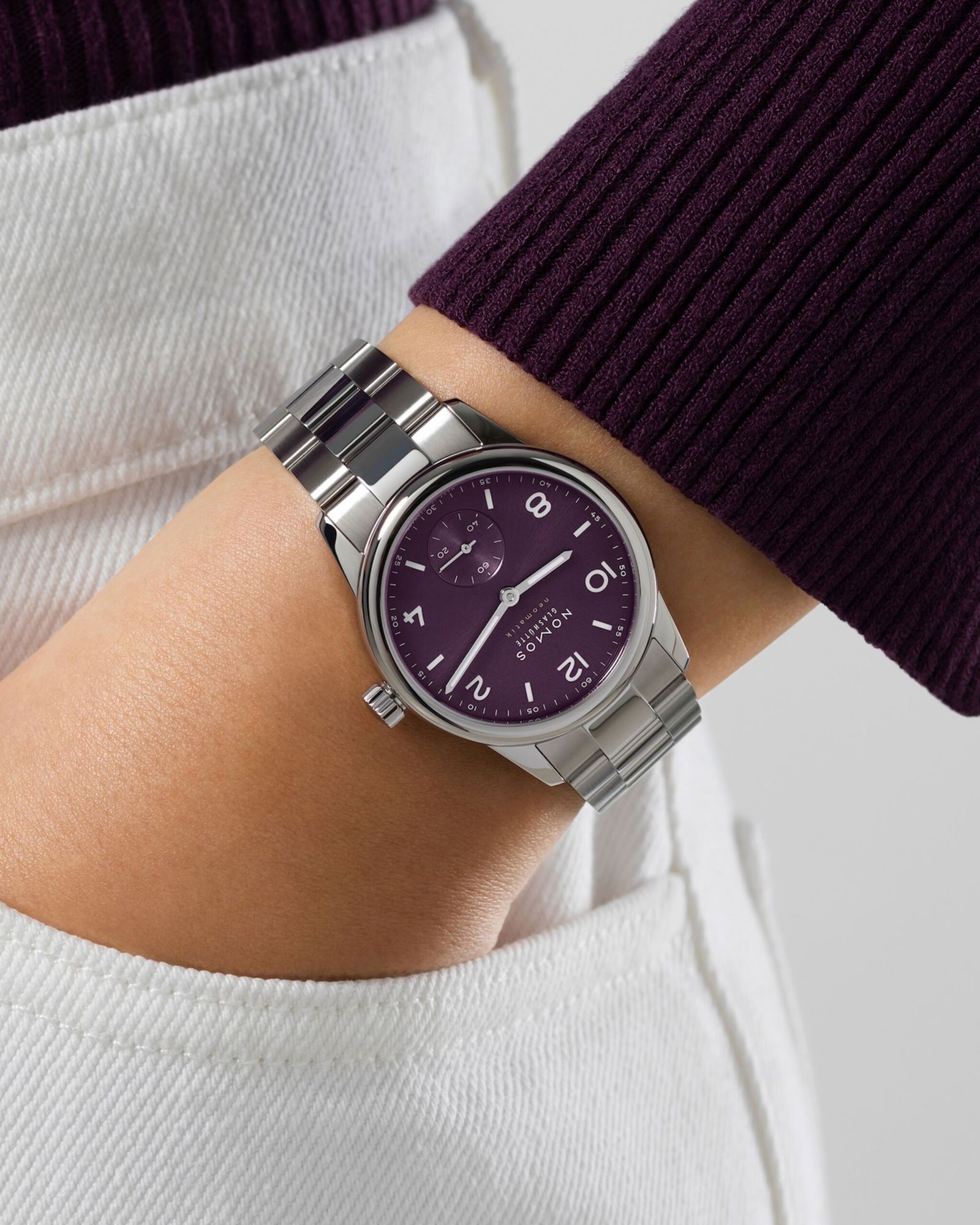 NOMOS Glashütte Club Sport neomatik 34 purple Ø 34 mm, Automatik, Edelstahl, Edelstahlband, wasserdicht bis 20 atm. Ab 2.600 EUR